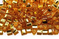 Бисер японский TOHO Bugle стеклярус 3мм #0022F светлый топаз матовый, серебряная линия внутри, 5 грамм