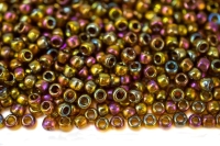 Бисер японский TOHO Bugle стеклярус 6мм #0084 зеленый/коричневый, металлизированный ирис, 5 грамм