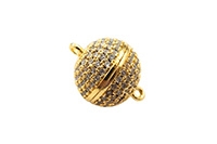Замок магнитный Круглый со стразами, диаметр 10мм, длина 16мм, отверстие 1,5мм, цвет золото, сплав металлов, 10-088, 1шт