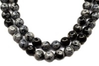 Бусина круглая Обсидиан снежный 8мм, отверстие 1мм, оттенок черный/серый, 567-001, 1 нить (около 22шт)